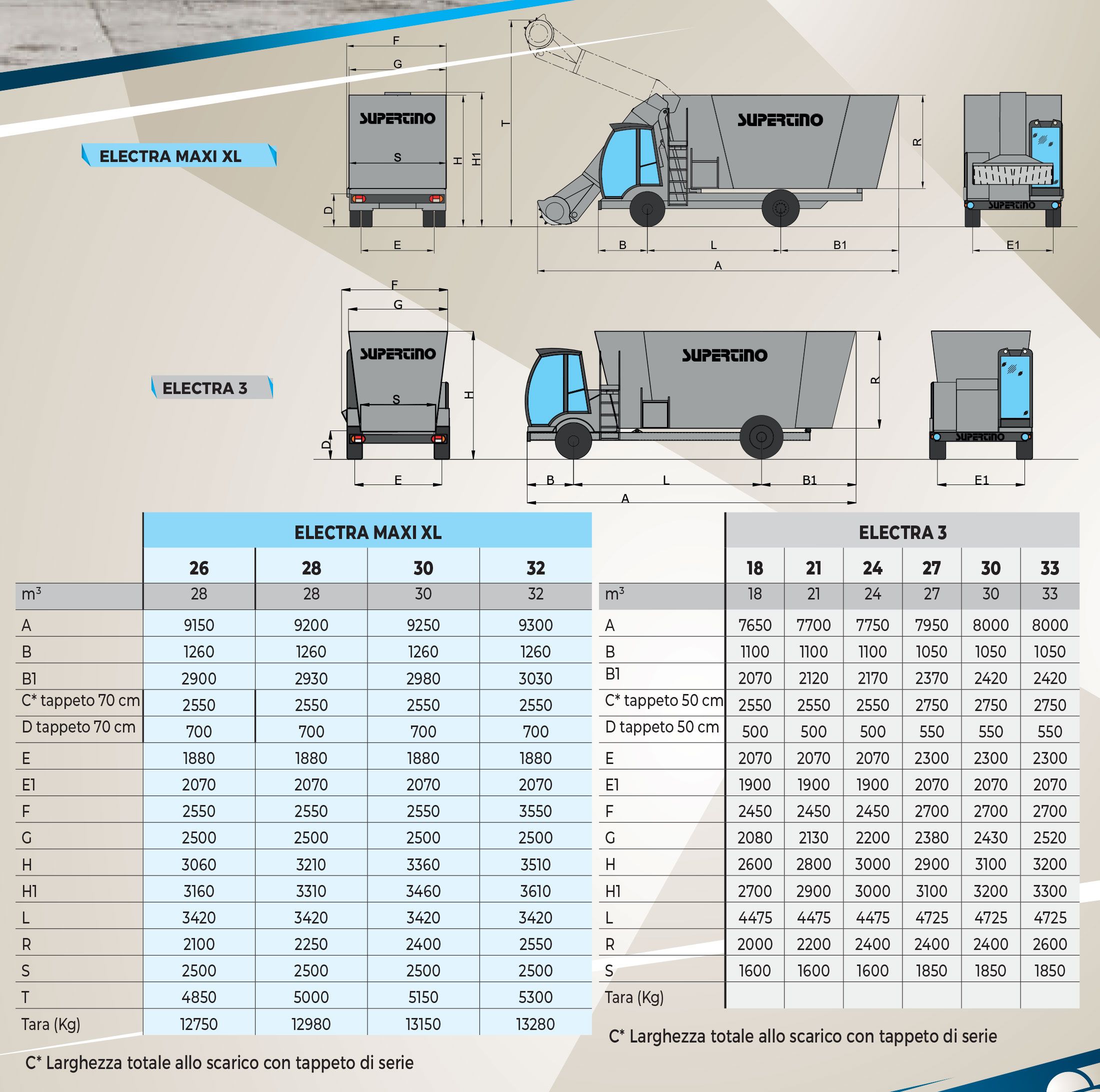 ELECTRA 3 completa la gamma Electra con la versione a 3 coclee convergenti e sincronizzate, questo permette di avere una macchina più compatta in altezza e larghezza, garantendo una maggiore rapidità di taglio. Su tutta la gamma Electra si può inoltre scegliere la versione senza fresa desilatrice per contenere la lunghezza della macchina. Questa versione a 3 coclee è configurabile con una capacità a scelta da 18 a 33 m³.