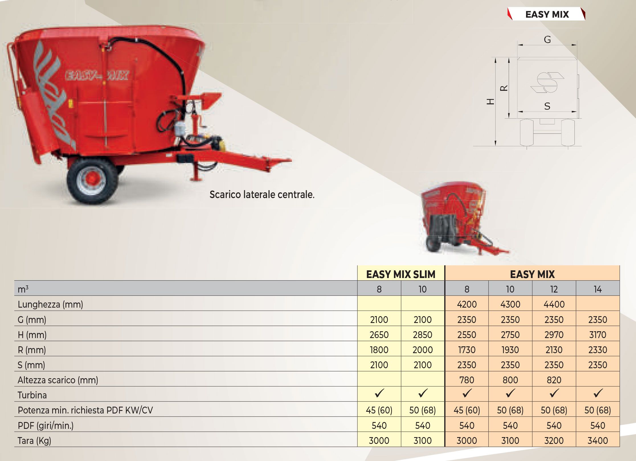 - Tutti i carri possono inoltre essere equipaggiati di una turbina impagliatrice posta sulla parte anteriore della macchina. Questo tipo di optional, ideale per la media azienda, consente di poter eseguire con la medesima macchina sia le operazioni di trinciatura, miscelazione e scarico del prodotto in mangiatoia, che l’operazione di impagliatura nella lettiera.