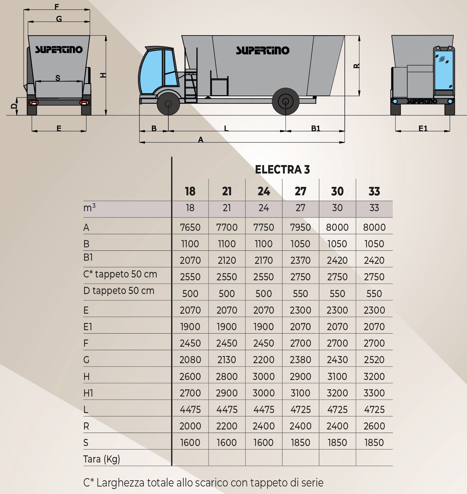 ELECTRA 3 complète la gamme Electra avec la version 3. Les vis convergentes et synchronisées permettent une machine plus compacte en hauteur et en largeur, garantissant une vitesse de coupe accrue. Une version sans désileuse est également disponible sur toute la gamme Electra afin de réduire la longueur de la machine. Cette version à 3 vis peut être configurée avec une capacité allant de 18 à 33 m³.